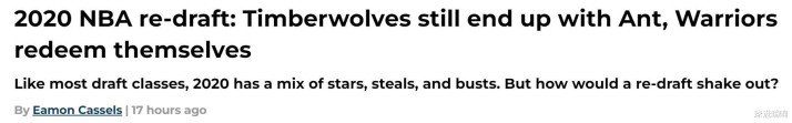 勇士队看走眼!在新赛季即将到来之际,美媒《fansided》预热重排2020年NBA乐透秀,其中状元郎不变,哈利伯顿飙升至榜眼。