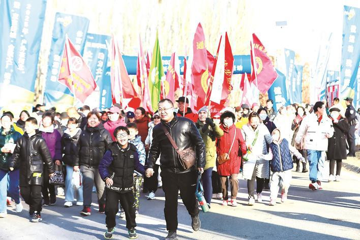 图为市民参加健步走活动。何赛摄